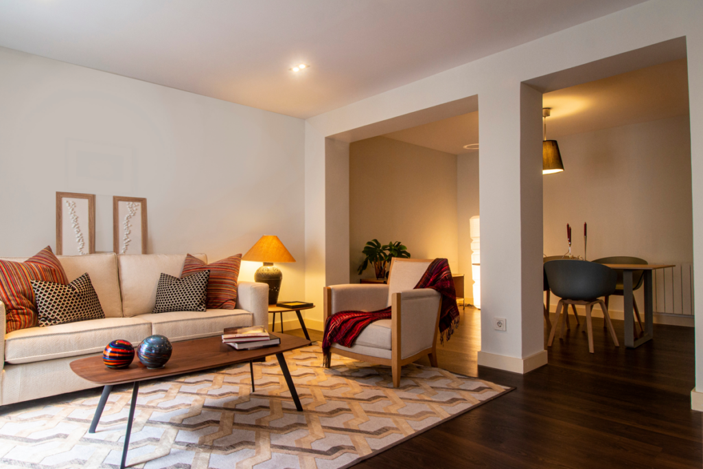 • Viesistaba. Šī ir laba vieta, kur izmantot padziļinātu apgaismojumu. Ja telpā ir galvenā atpūtas zona, izmantojiet lielāku virsgaismas apgaismojumu, lai to centrētu. Novietojiet stāvlampas vietās, kur nepieciešams, lai apgaismotu ēnainos stūrus. Visbeidzot, ja jums ir bufete vai cita liela mēbele, iespējams, vēlēsities apsvērt galda lampu.
