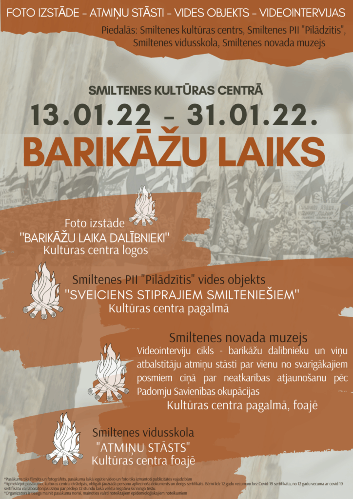 No 2022. gada 13. janvāra līdz 31.janvārim, Smiltenes kultūras centrā būs iespējams izzināt, ieraudzīt un sadzirdēt stāstus un atmiņas par barikāžu laiku.