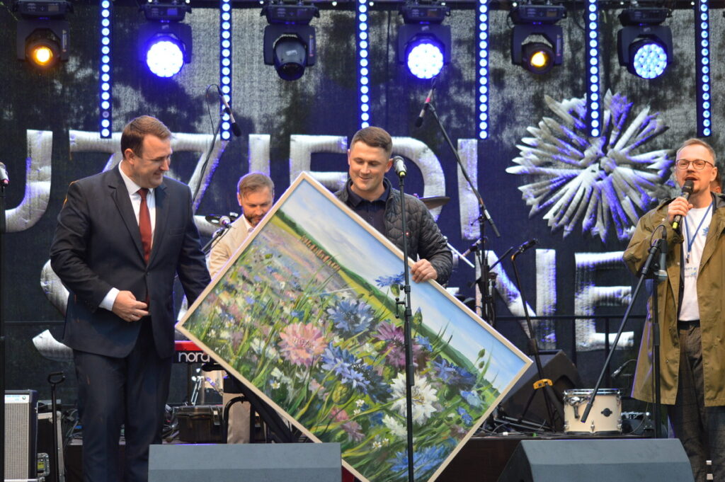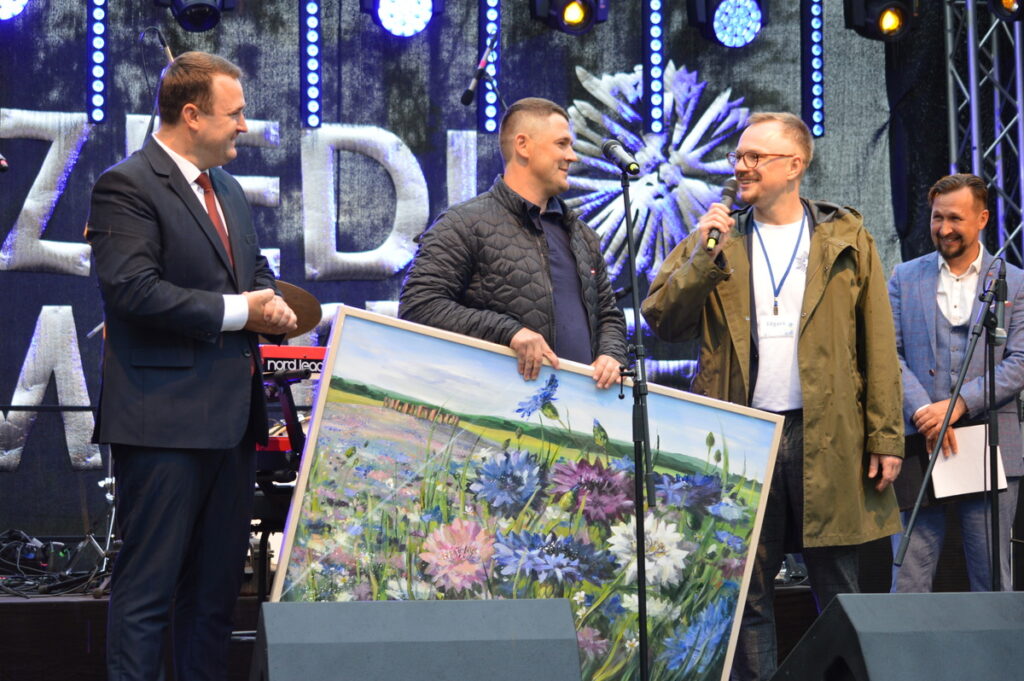 Smiltenes novada pašvaldības dāvanu – gleznu “Rudzupuķu lauks”– viņš pasniedza  Bērziņu ģimenes pārstāvim Tomam Bērziņam.