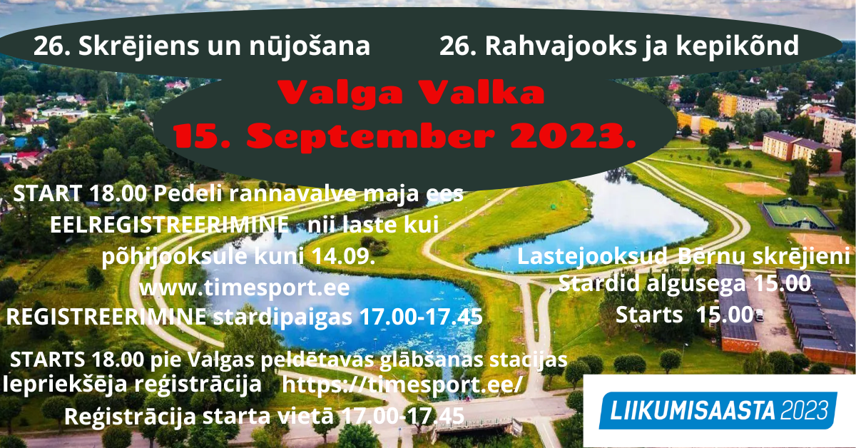 15. septembrī jau 26. reizi tiks dots starts tradicionālajām masu skrējienam “Valga – Valka”. Skrējiens simbolizē Valkas – Valgas ciešo draudzību, un tā mērķis ir popularizēt skriešanu kā aktīvu dzīvesveidu starp abu valstu iedzīvotājiem.