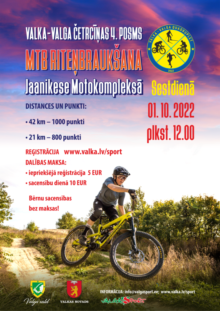 Sestdien, 1.oktobrī, Jānikese motokompleksā (Igaunijā) notiks Valkas-Valgas četrcīņas noslēdzošais posms – MTB riteņbraukšana.