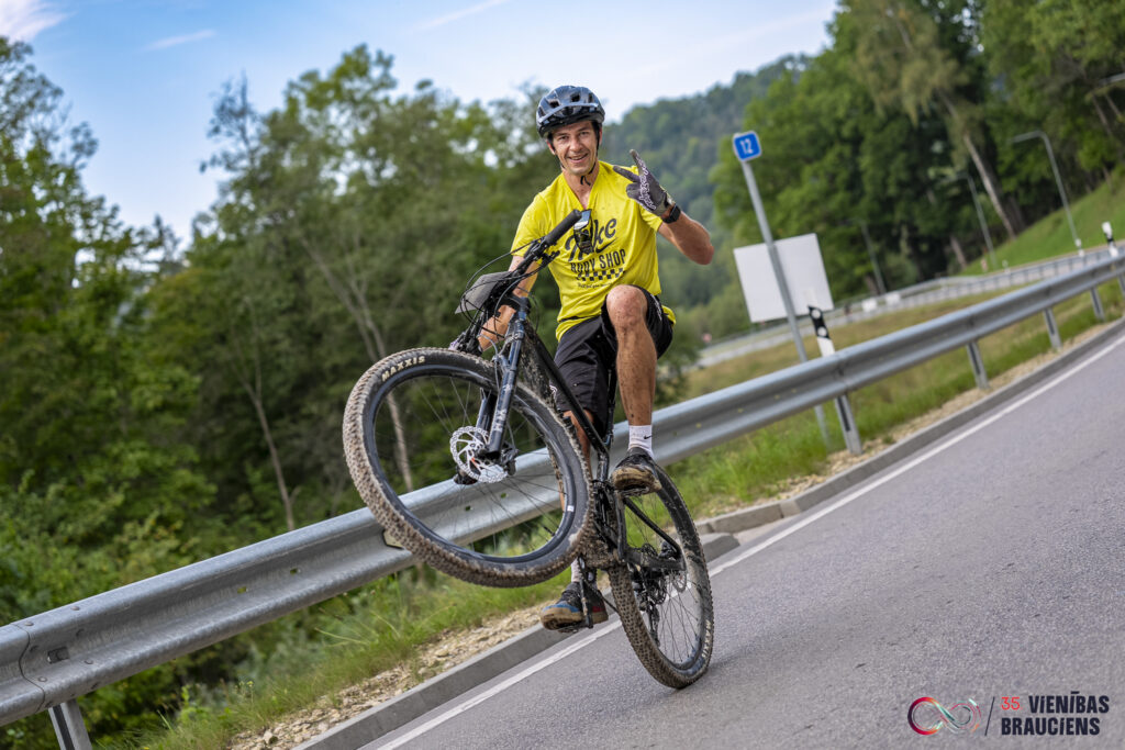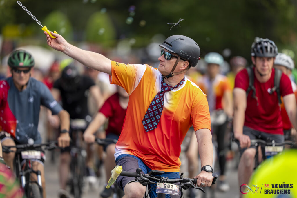 Latvijas Riteņbraucēju Vienības brauciens šogad atzīmēja savu 35. gadskārtu. Tradīcijām bagātākais un viens no masveidīgākajiem tautas sporta notikumiem Latvijā vienkopus sapulcināja jaunos riteņbraucējus, ikdienas braucējus, rūdītus pedāļu minējus, kā arī darba kolektīvus. Par krāšņumu parūpējās koši tērptie Izklaides brauciena dalībnieki.