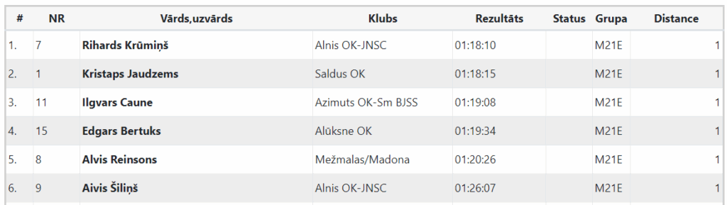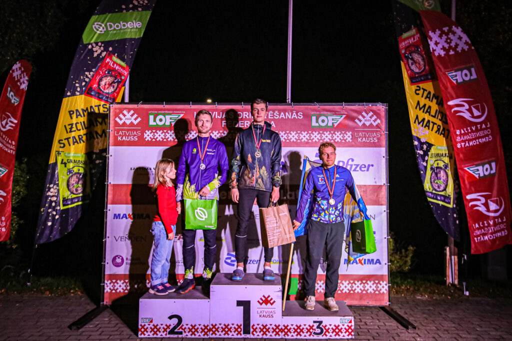Vīriešu grupā par Latvijas čempionātu nakts distancē kļūst alnietis (kurš skaitās arī siguldietis) Rihards Krūmiņš, kurš savu finiša taisnes pretinieku un sudraba medaļnieku, Kristapu Jaudzemu, apsteidza par tikai piecām sekundēm! Augsto trešo vietu izcīna azimutietis Ilgvars Caune, zaudējot līderim nepilnu minūti.
