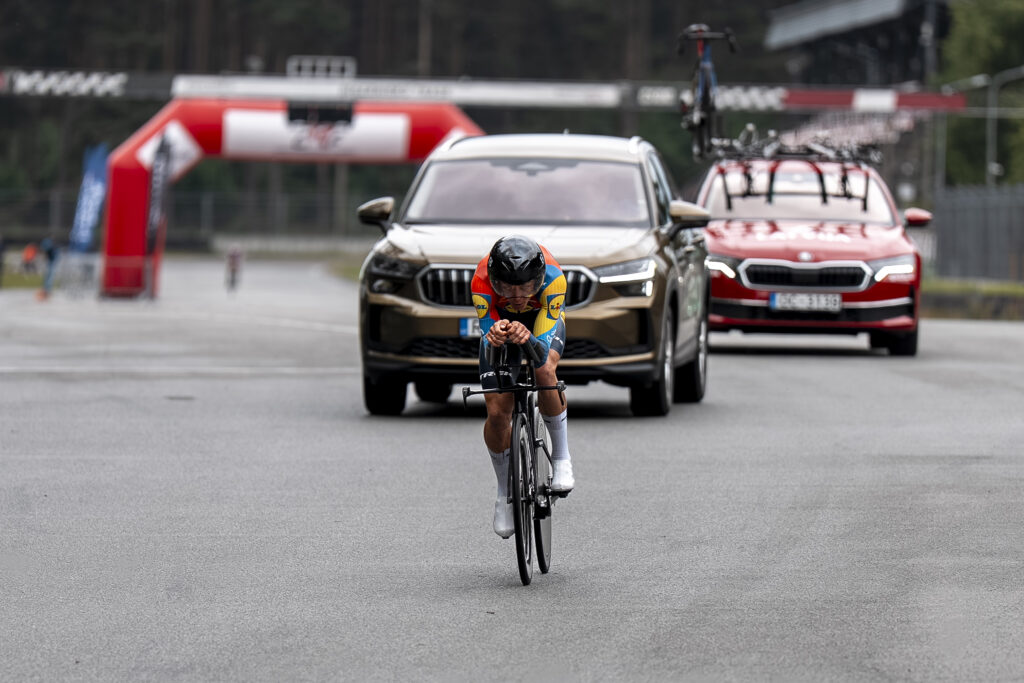 Vēl pirms pēdējā apļa sekunde šķīra Belohvoščiku un Liepiņu, beigās 2024.gada U23 čempionam Belohvoščikam (Monzon-Icolor-Gub) iegūstot bronzu. Liepiņš (Q36.5 Pro cycling team) no trijnieka atpalika 8 sekundes un tādējādi pagājušā gada vicečempions un pēdējo četru gadu medaļnieks Liepiņš samierinājās ar 4. vietu, koncentrējoties uz titula aizstāvēšanu grupas braucienā svētdien. Kristers Kovgers uzrādīja piekto laiku, bet sešinieku noslēdza desmitkārtējais čempions Belohvoščiks vecākais.