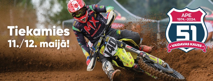 Nākamajā sestdienā un svētdienā (11. un 12. maijā) motokrosa entuziasti un atbalstītāji tiksies Apē, kur norisināsies 51. Vaidavas kausa izcīņa motokrosā, “Magmum” Latvijas čempionāta 2. posms.