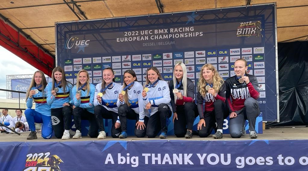 Svētdien, 10.jūlijā, Beļģijas pilsētā Deselā noslēdzies UEC Eiropas čempionāts BMX riteņbraukšanā. Dāmu komandu sacensībās trešo vietu izcīnīja Latvijas sportistes – Vineta Pētersone, Veronika Monika Stūriška un Līva Lizete Glāzere, informē Latvijas Riteņbraukšanas federācija.