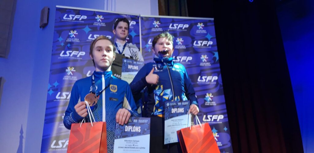 Grundzāles pamatskolas orientieristi izcīna pilnu medaļu komplektu Latvijas skolu Ziemas festivālā.