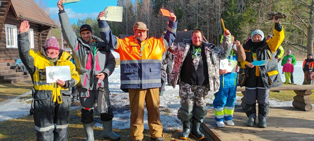 Atpūtas bāzes “Mednieki” saimnieks Jānis Biezais pasniedza veicināšanas balvu makšķerniekam ar vismazāko lomu. Pie balvas tika Sandis Mednis ar lomu 31g.