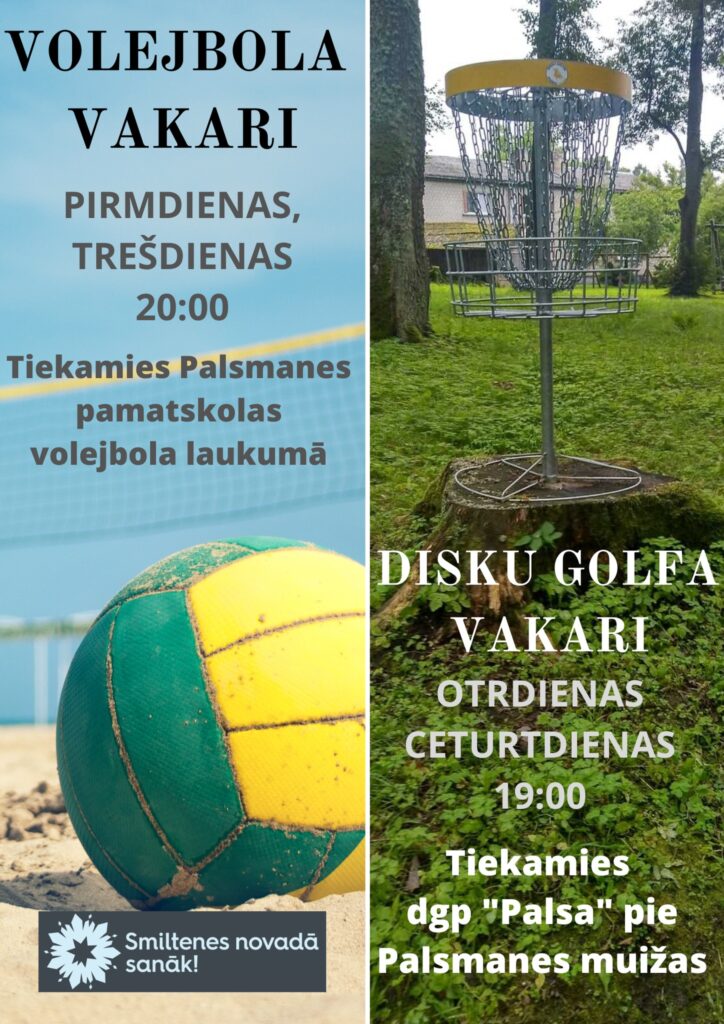 Pirmdienu un trešdienu vakaros no pulksten 20 Palsmanes pamatskolas volejbola laukumā norisināsies volejbola vakari, savukārt otrdienu un ceturtdienu vakaros pie Palsmanes muižas disku golfa parkā “Palsa” notiks disku golfa vakari.