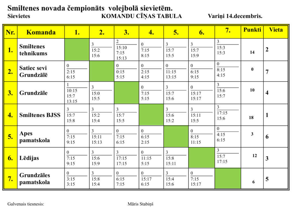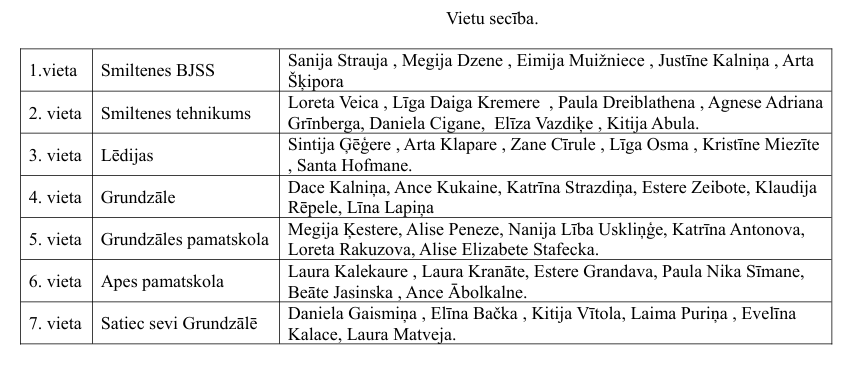 Ar interesi gaidījām Smiltenes BJSS un Smiltenes tehnikuma spēli tomēr BJSS volejbolistes uzvarēja pārliecinoši 15:7 un 15:8. Toties spēle ar Lēdijām Smiltenes tehnikuma komandai galvassāpes neradīja, kurā uzvara 15:7 un 15:9. Uz dienas beigām spēki galā arī Grundzāles pamatskolas meitenēm tā īsti pret Smiltenes tehnikumu neko neiespējot.