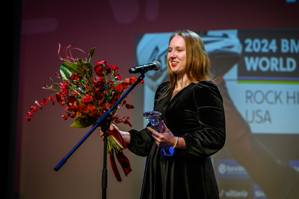 Gada labākās riteņbraucējas gods tika BMX sportistei Veronikai Monikai Stūriškai. No Jaunpiebalgas nākusī sportiste pērn kļuva gan par pasaules, gan Eiropas čempioni U23 grupā, kā arī piedzīvoja debiju Parīzes Olimpiskajās spēlēs. Veronikai arī trešā vieta Pasaules kausa kopvērtējumā U23 grupā. Viņu pasākumā sveica Radio Pieci ētera personības un ziedojumu akcijas “Dod Pieci” dalībnieki – Toms Grēviņš un Jānis Pētersons.