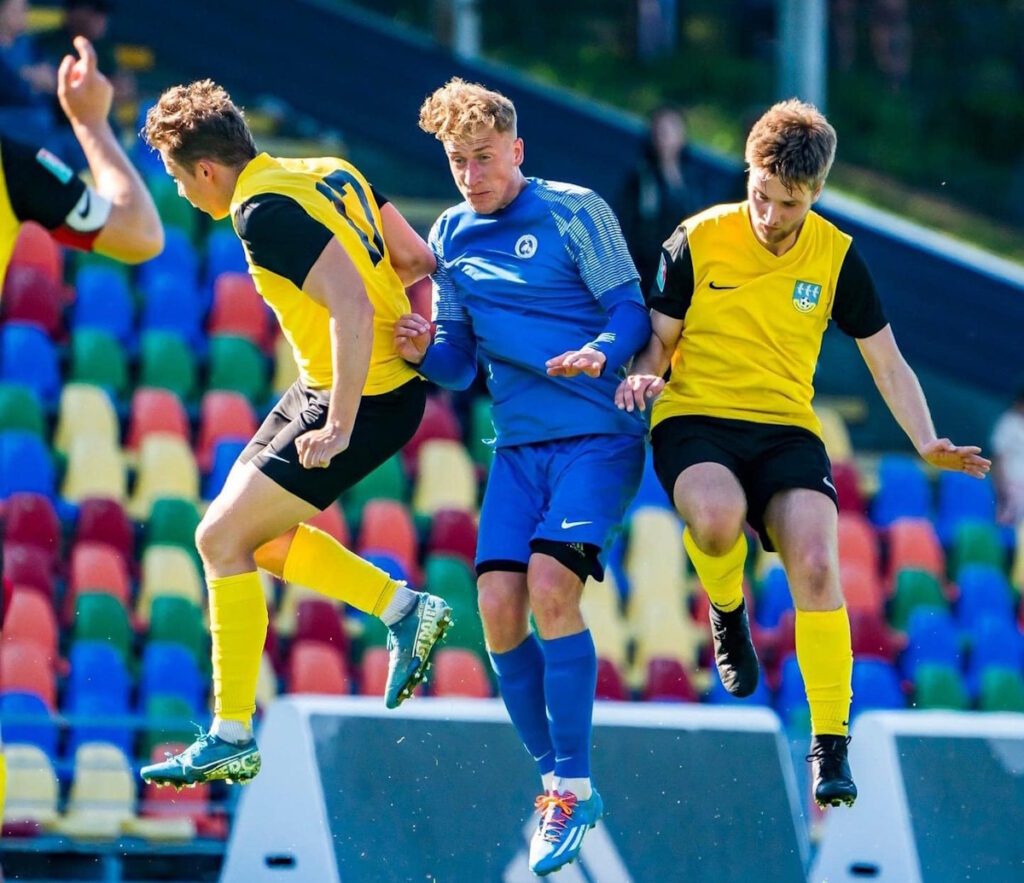 Pirmajā puslaikā viens no pretinieku uzbrukuma līderiem Deivids Dobrecovs atzīmējās ar dzelteno kartīti un vārtu guvumu minūti pirms puslaika beigām.
