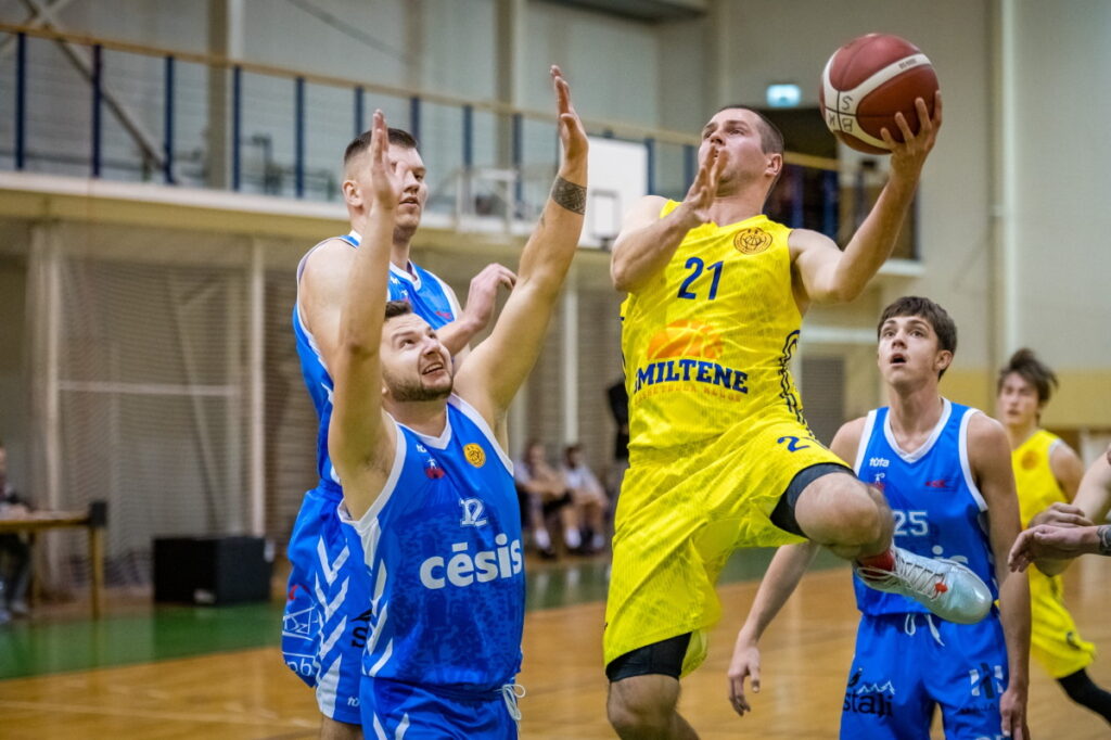 Uzvaru Reģionālās basketbola līgas spēlē piektdien, 25. novembrī, izcīnīja BK “Smiltene/BJSS”, kas savā laukumā ar 89:79 (20:19, 23:17, 19:23, 27:20) pārspēja BK “Cēsis/Cēsu sporta skola”.