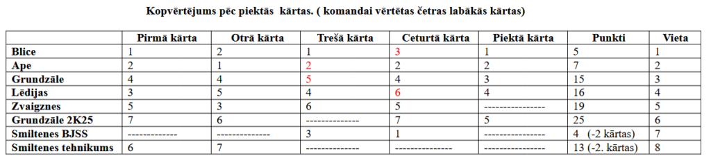 Pēdējā kārta notiks svētdien, 22. martā, Smiltenes sporta hallē. Izloze plkst. 9.45.