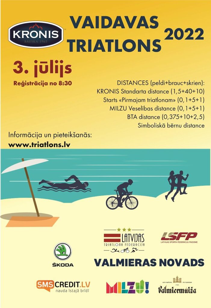 Svētdien, 3. jūlijā, Valmieras novada Vaidavā jau 35. reizi norisināsies sacensības “KRONIS Vaidavas triatlons”, kas vienlaikus būs arī Latvijas kausa posms triatlonā. Sacensību centrs atradīsies Vaidavā, Parka un Ezera ielu krustojumā.