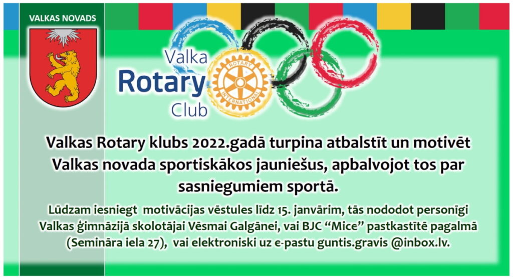 “Valka Rotary” klubs 2022. gadā turpina atbalstīt un motivēt Valkas novada sportiskākos jauniešus, apbalvojot tos par sasniegumiem sportā.
