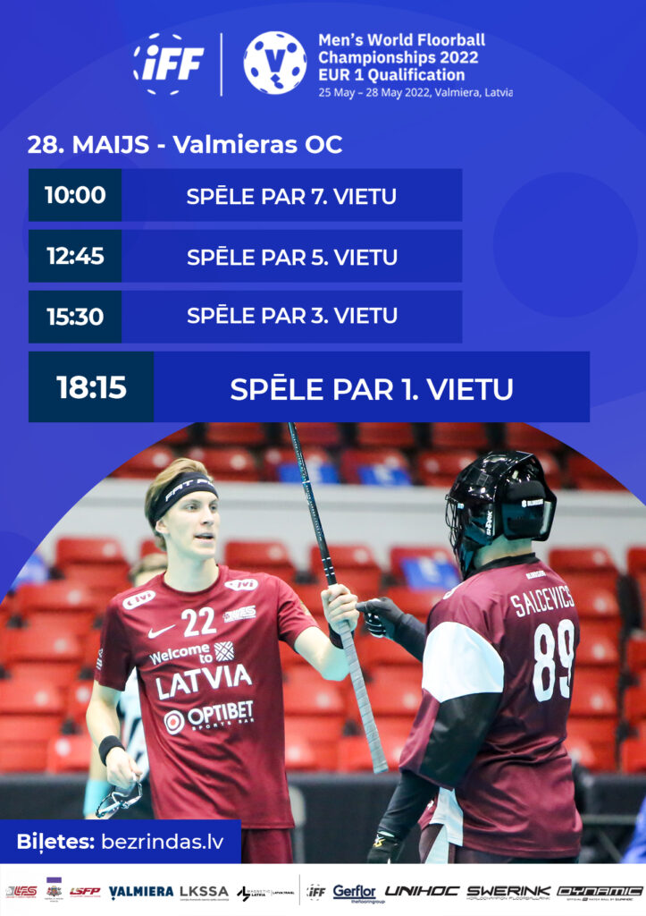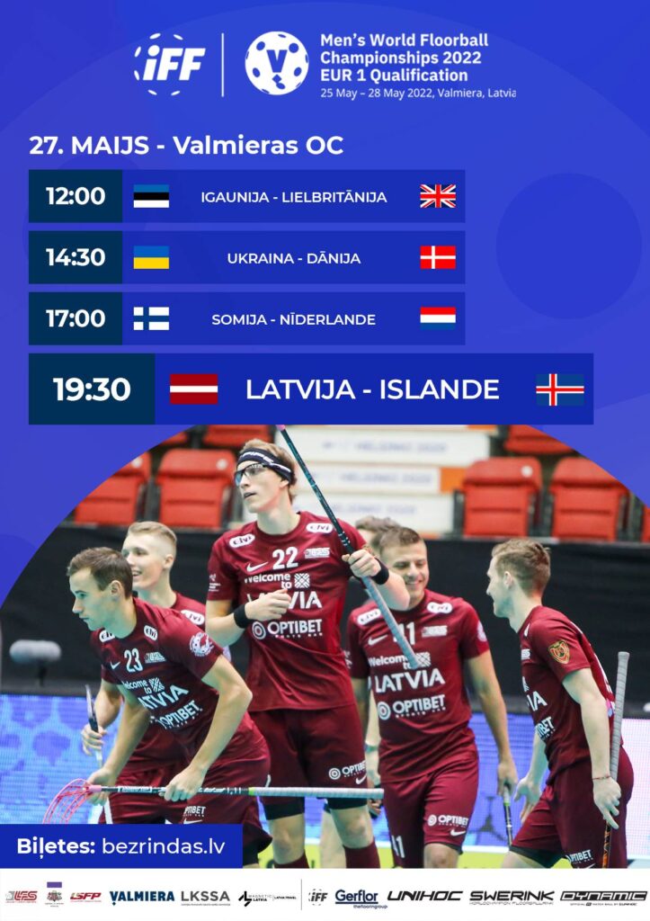 No 25. līdz 28. maijam Valmierā un Kocēnos norisināsies 2022. gada pasaules čempionāta florbolā vīriešiem Eiropas zonas kvalifikācijas turnīri, kuros par ceļazīmēm uz finālturnīru cīnīsies 15 valstu izlases. Dienas biļetes uz EUR 1 turnīru Valmierā ir iespējams iegādāties tiešsaistē – www.bezrindas.lv. Ieeja uz EUR 2 turnīra spēlēm Kocēnos būs bez maksas.