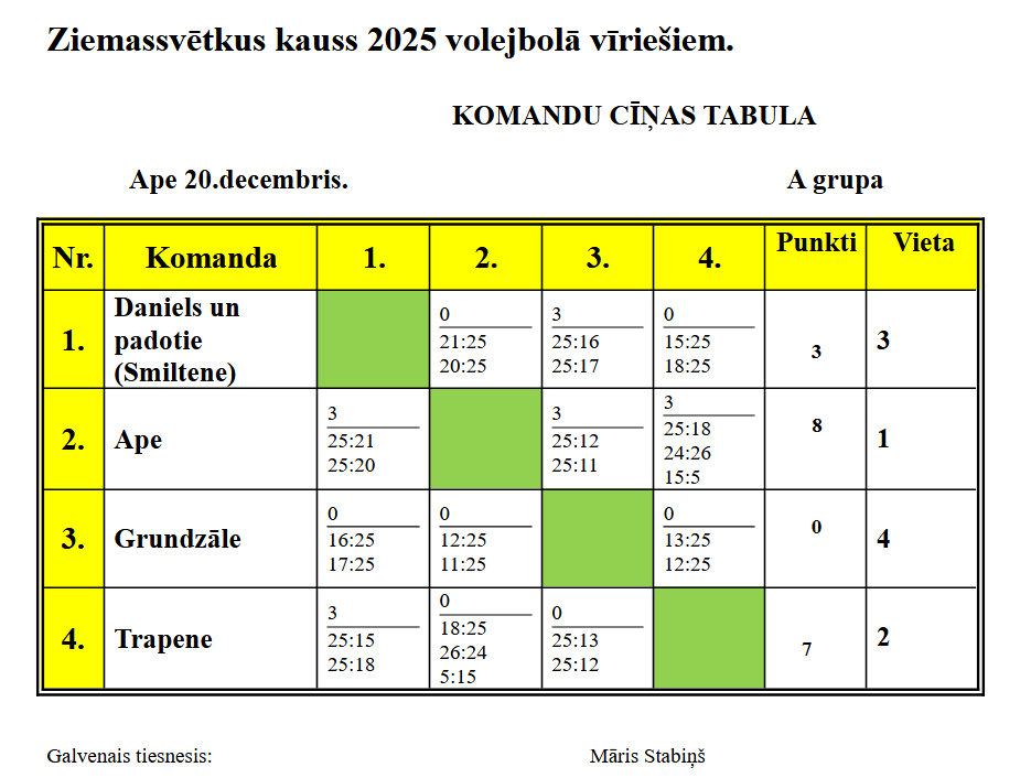 20.decembrī Apē notika Ziemassvētku kausa izcīņa volejbolā 6:6 vīriešiem.