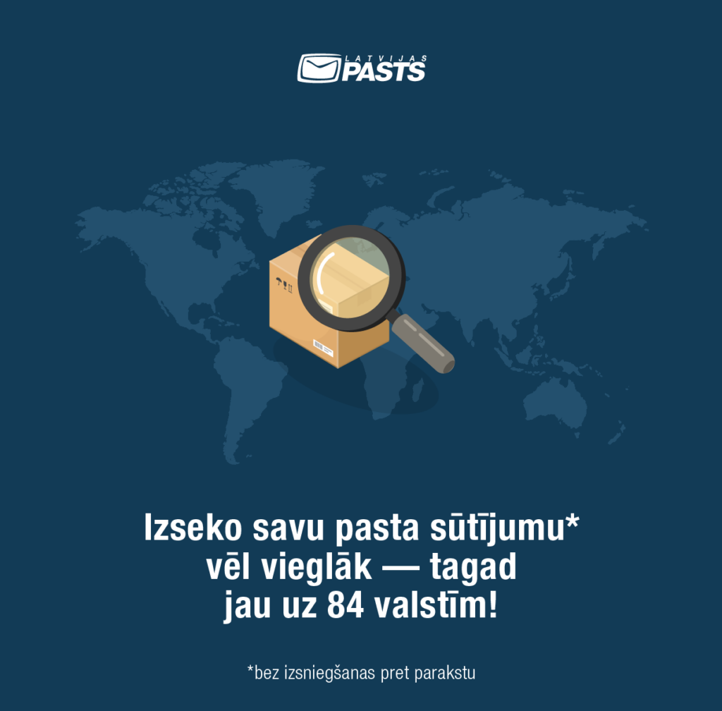 No 1.janvāra “Latvijas Pasts” paplašina izsekošanas pakalpojumu sūtījumiem, kas saņēmējam tiek izsniegti bez paraksta, ievietojot tos pastkastītē vai izsniedzot pasta nodaļā, – līdzšinējo 37 valstu vietā tagad izsekošana būs pieejama sūtījumiem jau uz 84 valstīm. Sūtījuma izsekošanas pakalpojums paredz iespēju klientam sekot sava sūtījuma ceļam elektroniskajā vidē. Tā kā šādi noformētu sūtījumu izsniegšana saņēmējam nav pret parakstu, šis pakalpojums izmaksu ziņā ir izdevīgāks nekā reģistrētu/ierakstītu vai apdrošinātu sūtījumu piegāde, kas arī nodrošina sūtījumu izsekošanu, bet tiek izsniegti pret parakstu.