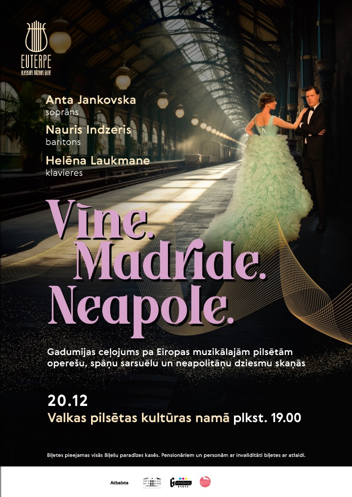 Klasiskās mūzikas ģilde “Euterpe” aicina doties krāšņā gadumijas ceļojumā pa Eiropas muzikālajām pilsētām operešu, spāņu sarsuēlu un neapoliešu dziesmu skaņās koncertā “Vīne. Madride. Neapole”.
