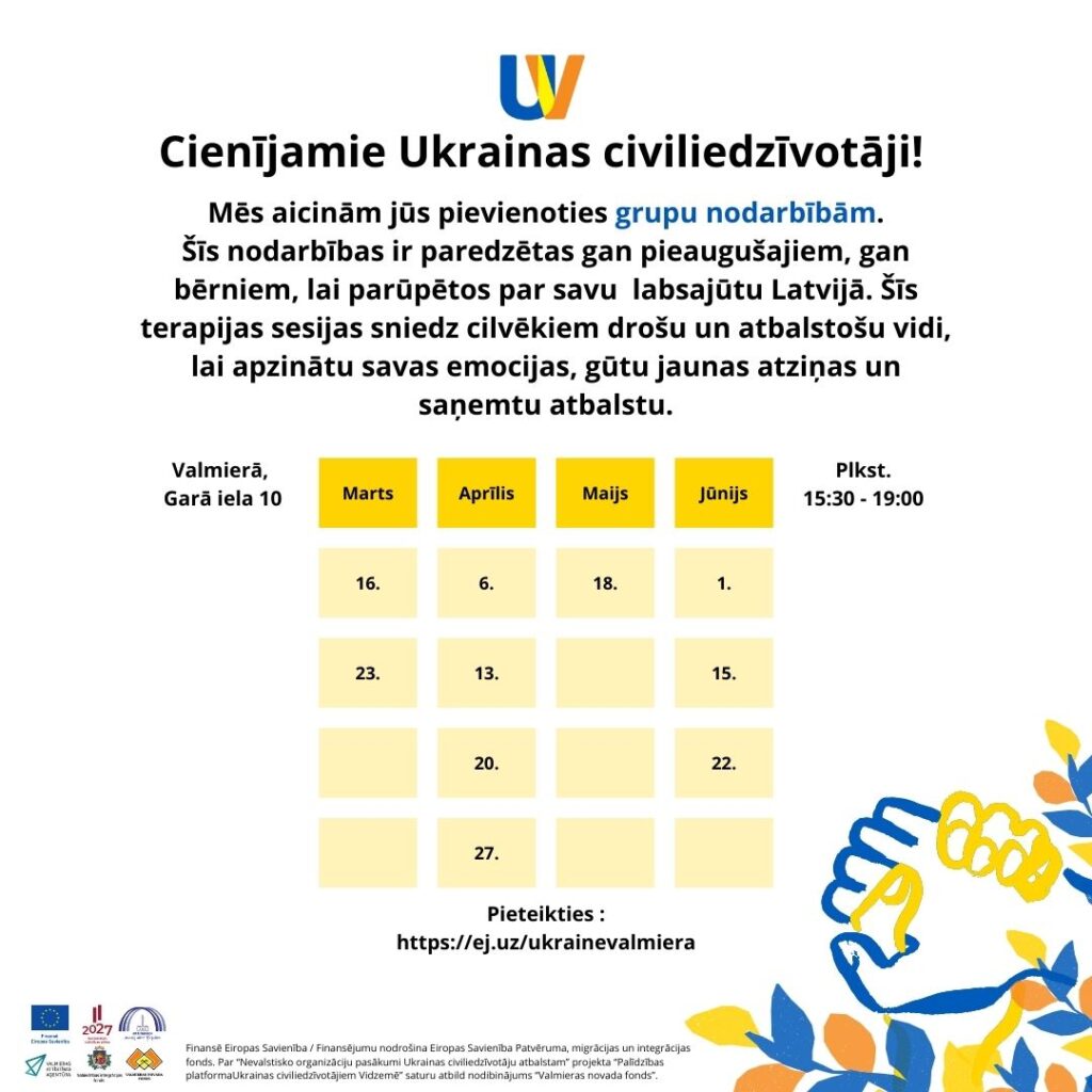 Pieteikšanās grupu nodarbībām – https://ej.uz/ukrainevalmiera