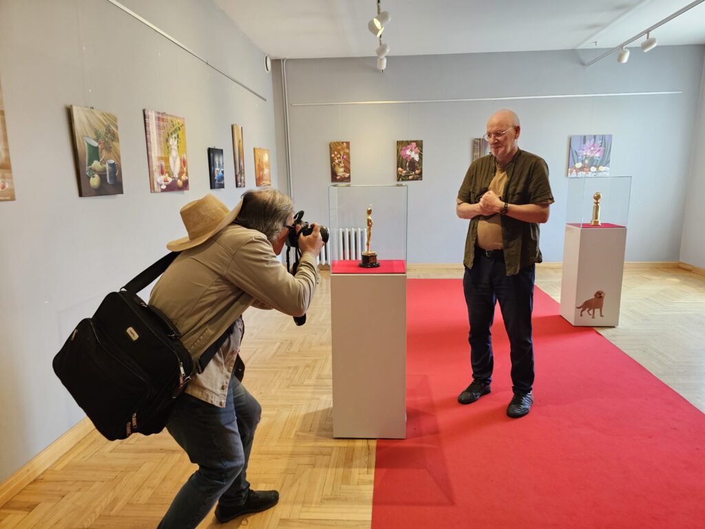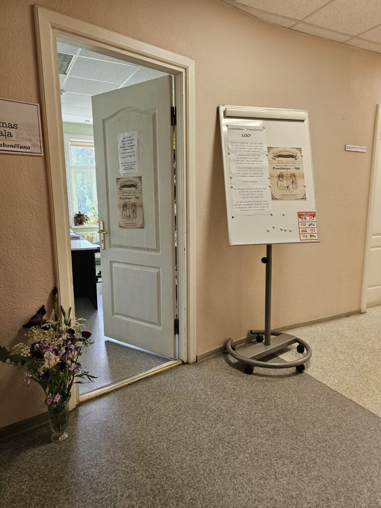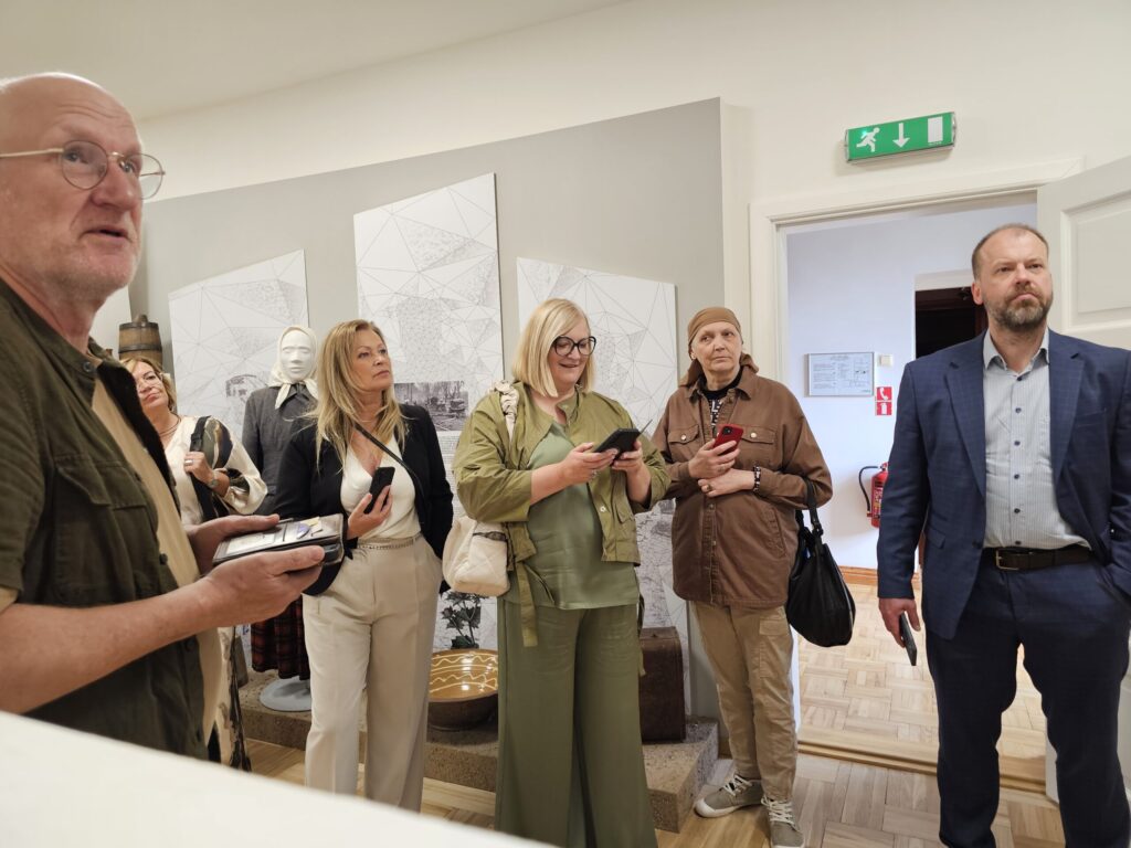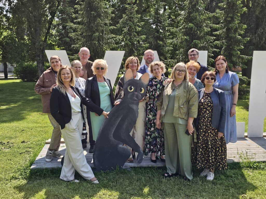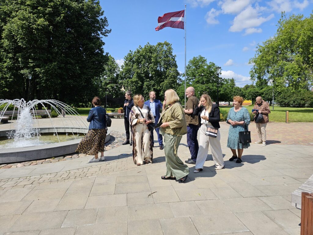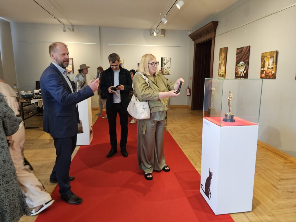 Viesi no citām redakcijām “Ziemeļlatvijas” darbinieku pavadībā aplūkoja multfilmai “‘Straume” piešķirtos nozīmīgākos apbalvojumus un nofotografējās arī pie Valkas uzraksta, kuru izdaiļo “Straumes” kaķis.