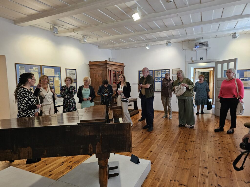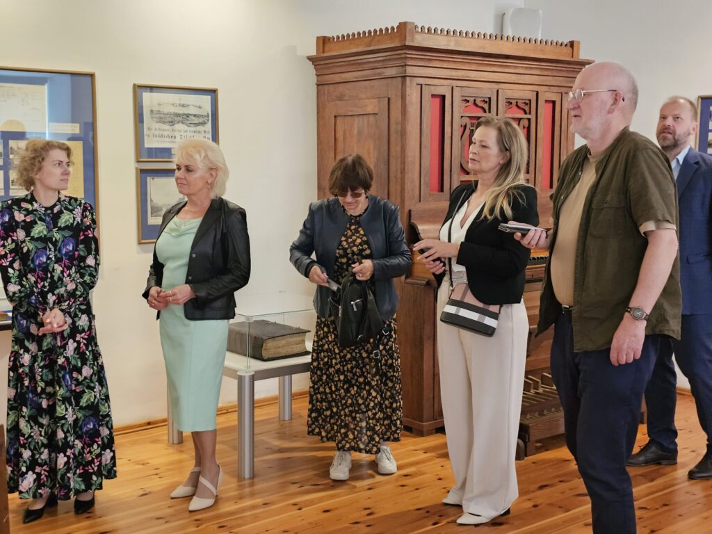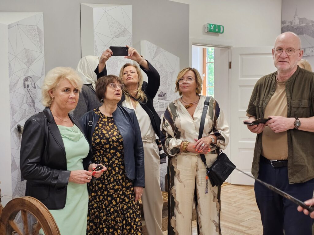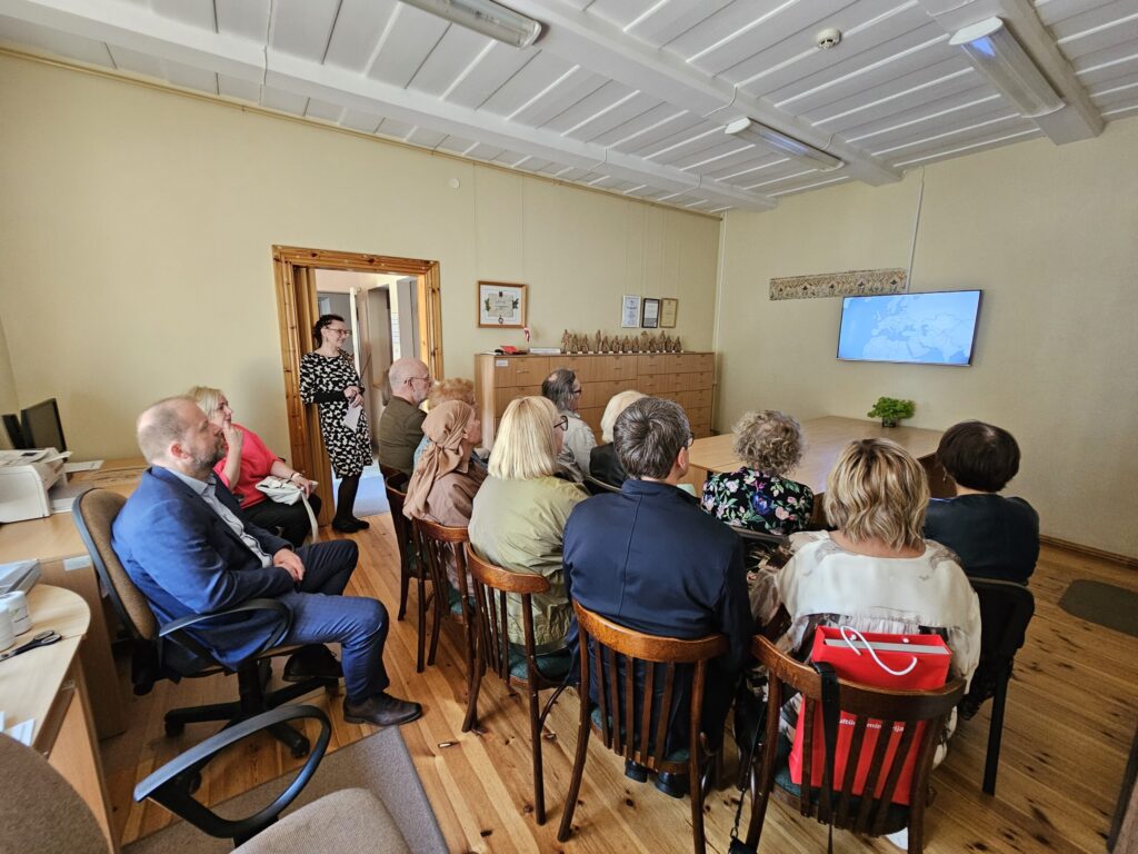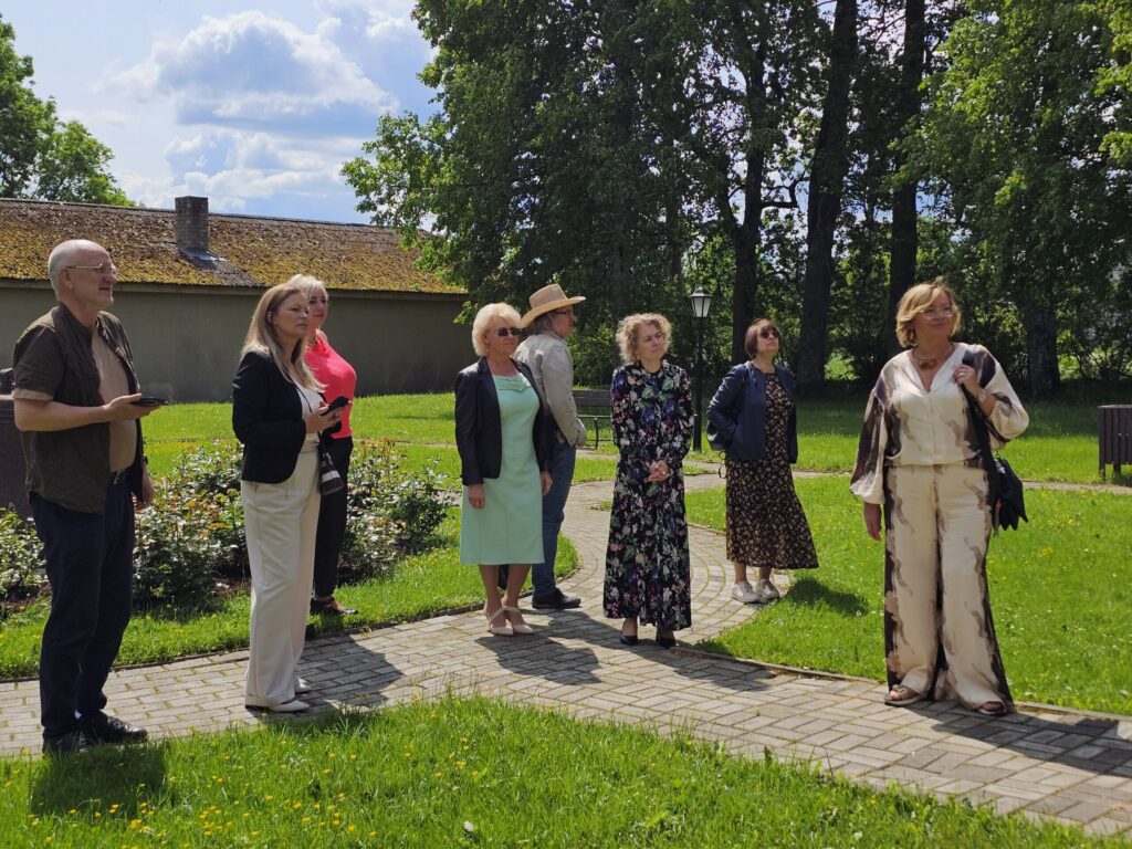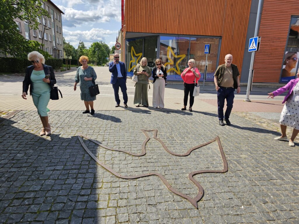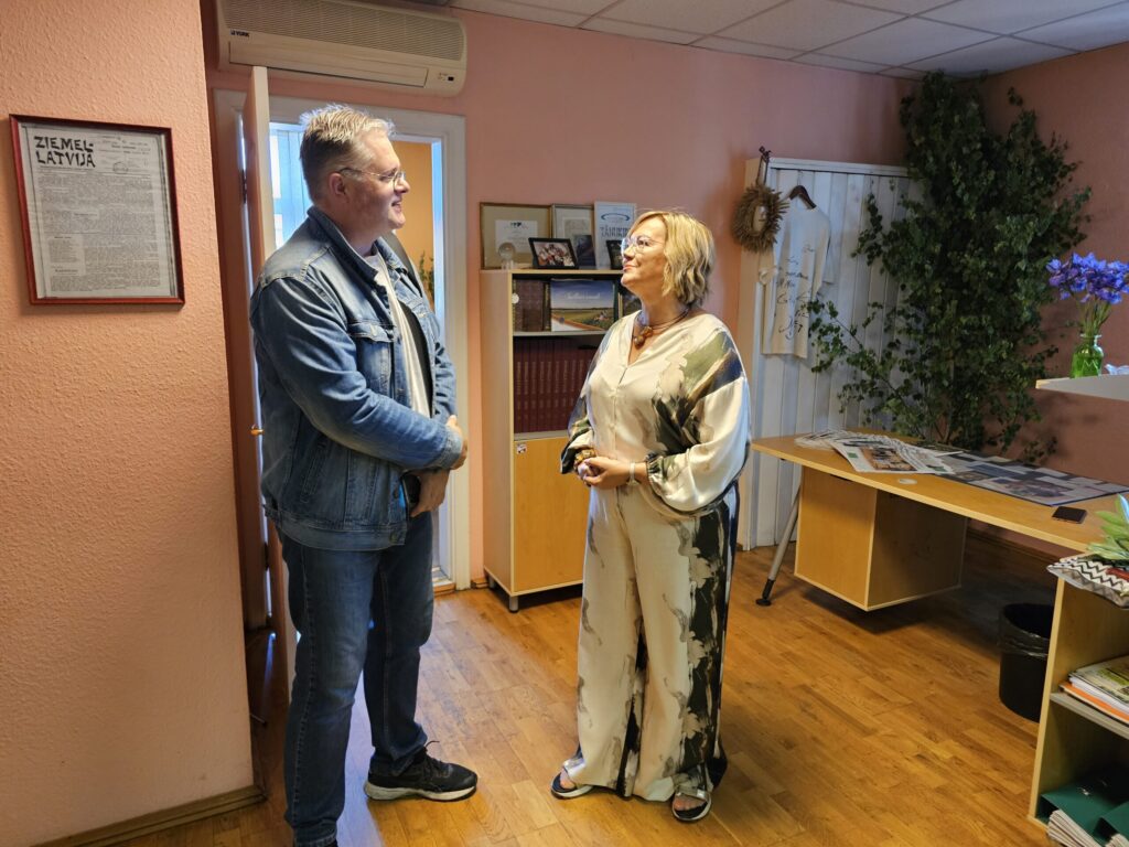 Viesi no citām redakcijām “Ziemeļlatvijas” darbinieku pavadībā aplūkoja multfilmai “‘Straume” piešķirtos nozīmīgākos apbalvojumus un nofotografējās arī pie Valkas uzraksta, kuru izdaiļo “Straumes” kaķis.