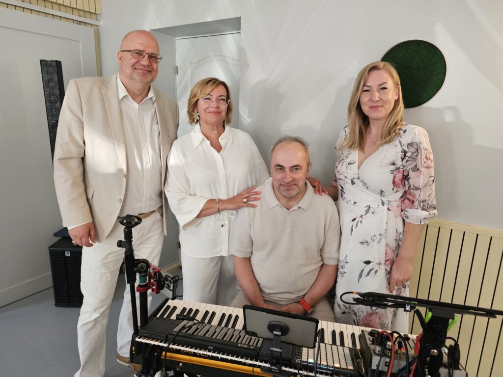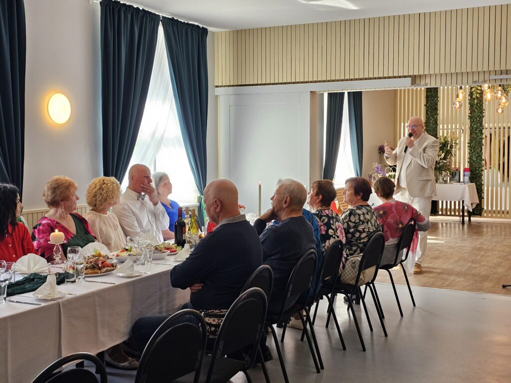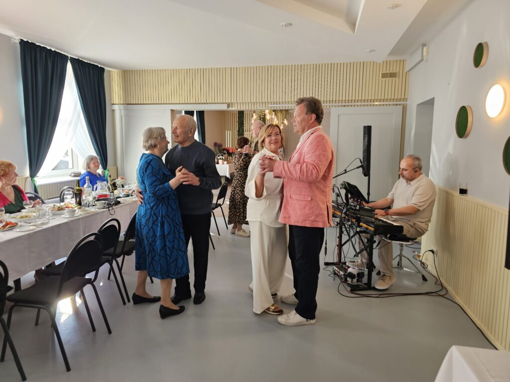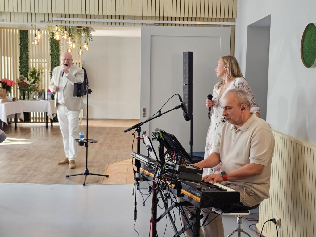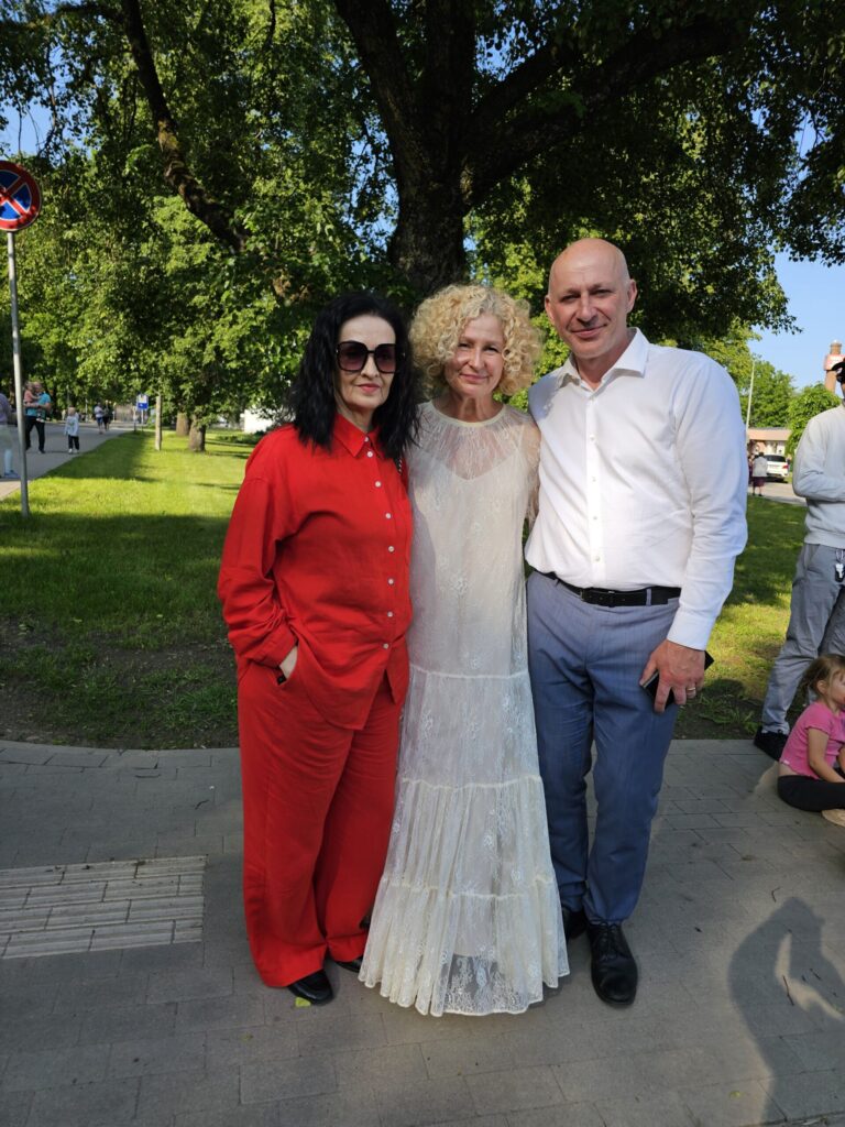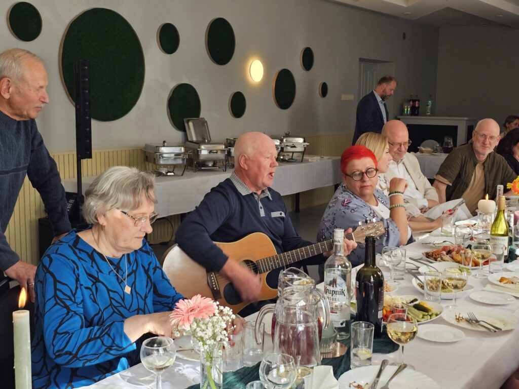 Ne jau tikai rakstīšana padodas mediju ļaudīm, viņi labprāt arī uzdzied. Ļoti labi, ja svētkos mikrofonu rokās var ņemt kāds no pašu vidus. Ar muzikālu sveicienu uzstājas bijušais laikraksta galvenais redaktors Vents Armands Krauklis. Kopā ar viņu muzicē sieva Līga, bet pie sintezatora – Andris Niklavičs.